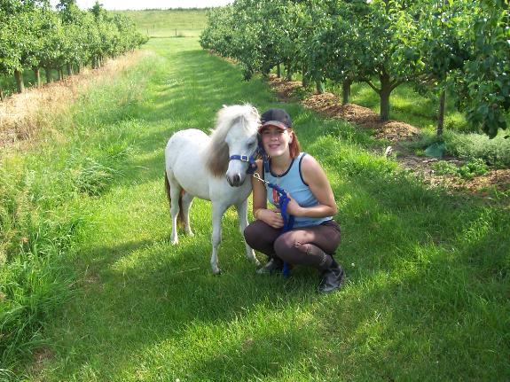 Hier sta ik samen met wobbe op de foto. Deze foto heeft mijn moeder gemaakt toen we in de boomgaard aan het wandelen waren. |